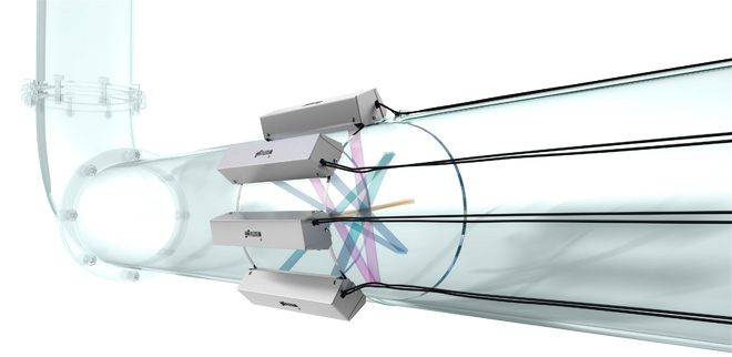 Расходомер газа FLUXUS G706 сочетает в себе высочайшую точность цифровой обработки сигналов с хорошо известными преимуществами бесконтактной ультразвуковой технологии: простота установки, возможность модернизации, высокая точность и выдающиеся характеристики. С 4 ультразвуковыми лучами, установленными в режиме отражения, 8 независимых ультразвуковых трактов проходят через жидкую среду, что улучшает усреднение потока до 4 плоскостей секции трубы. В этой конфигурации расходомер газа G706 усредняет эффекты профиля поперечного потока и обеспечивает оптимальную компенсацию потока без вмешательства в нежелательные места установки, где отсутствие прямых участков выше по потоку, близость к изгибам, коленам или другим смежным приборам создает возмущения потока.